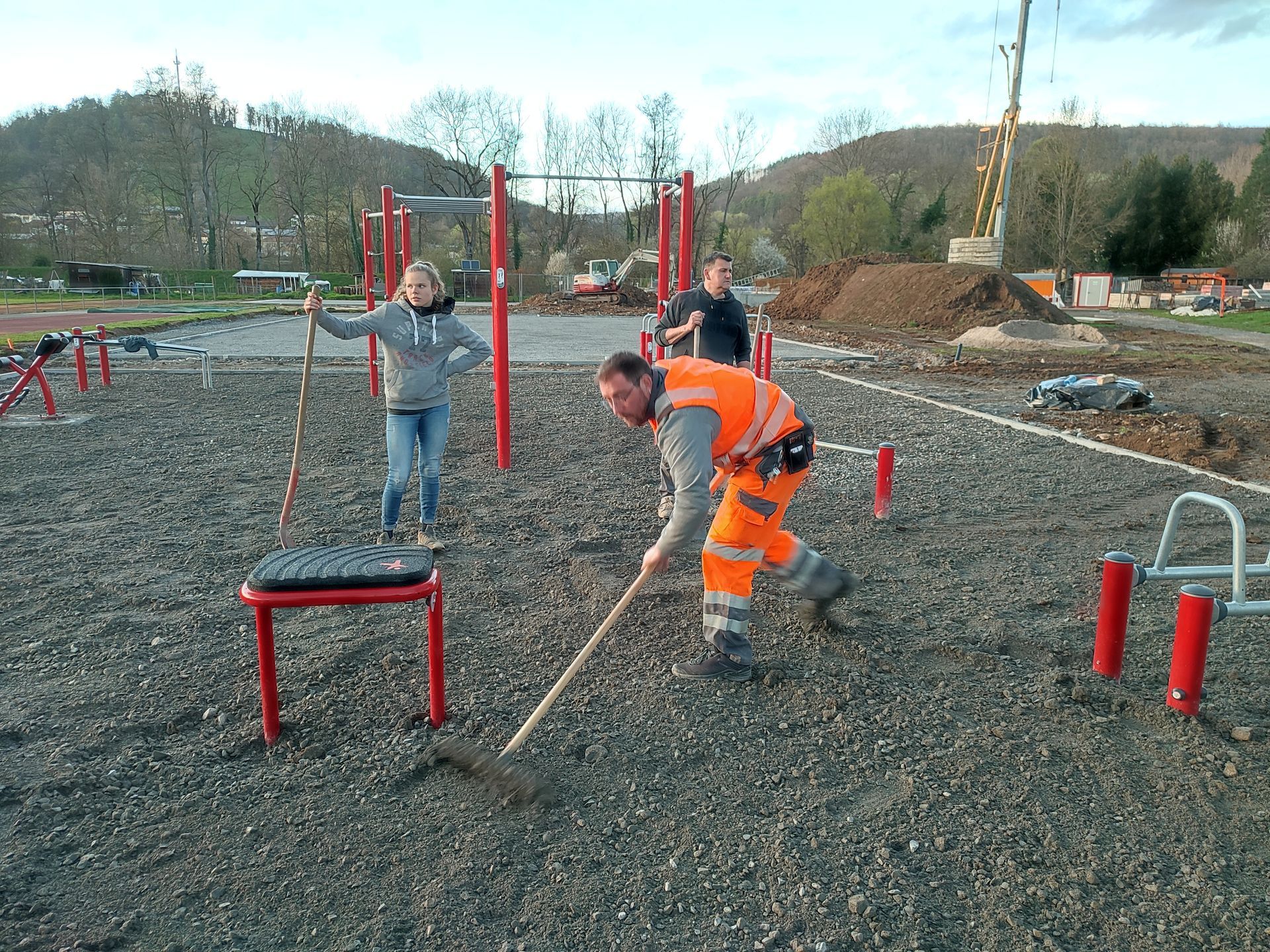 Nach langen Planungs- und Genehmigungsverfahren erfolgte Anfang Februar 2023 der Beginn der Bauarbeiten für unseren Sportpark "Im Spitzen". Wo sich bisher noch freies Gelände befand, soll schon in wenigen Wochen Sport auf drei neuen Anlagen betrieben werden. Neben einem Bandenspielfeld, der müller co-ax arena und dem müller co-ax court für Padel-Tennis, entsteht zusätzlich ein Calisthenics-Park, eine Outdoor-Fitnessanlage für Eigengewichtsübungen. Der symbolische Baubeginn in Form eines Spatenstichs erfolgte am Montag, dem 5. Dezember, durch die drei Vorsitzenden der TG Forchtenberg im Beisein von Bürgermeister Foss und unserem privaten Hauptsponsor, der müller co-ax GmbH, vertreten durch die Geschäftsführung Friedrich Müller und Antonio Erriu. Die TG Forchtenberg möchte sich an dieser Stelle herzlich für die großzügige Unterstützung des Projekts durch die Stadt Forchtenberg, die Firma müller co-ax GmbH sowie durch den Württembergischen Landessportbund bedanken. Wir freuen uns auf die neuen Anlagen und die damit verbundenen erweiterten Möglichkeiten für unser Sportangebot.